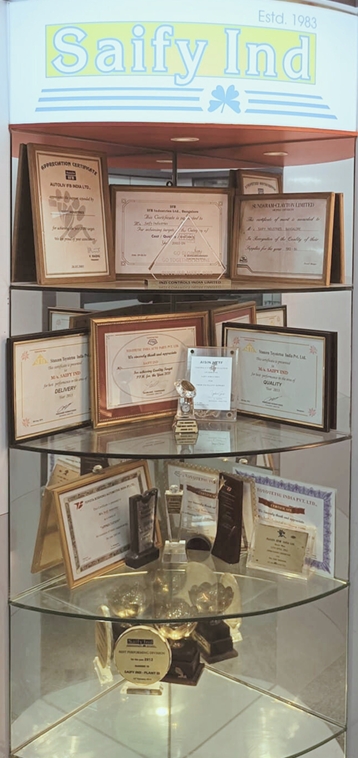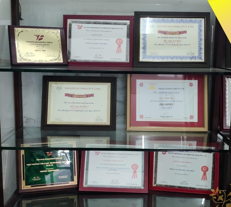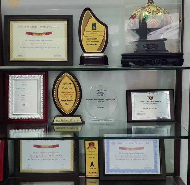 From 2010 to 2019 received several awards from Toyota Boshoku, Toyota Toyotetsu for On time Supply/Cost reduction/ Appreciation and Quality Targets.